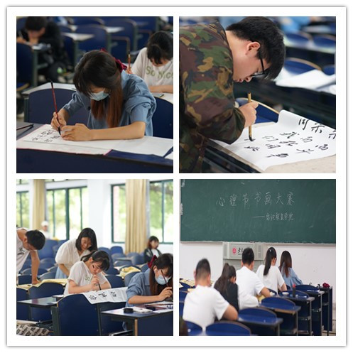 心理节书画大赛决赛由专业评审组从初赛中评选硬笔组、软笔组和绘画组各10名选手进行现场比拼。选手拿着碳笔挥洒自如,素描画大气而豪迈,水粉画精致而细腻,圆珠笔画细致逼真,行楷随意自然,隶书动静平衡,钢笔字体潇洒,独具个人特色。刘光宇同学的软笔书法笔酣墨饱,笔势活泼,灵活熟练。汪馨慧同学的绘画作品以橙黄色为主色调,色彩丰富,和谐自然,细腻地勾勒出了一个少女形象,优雅闲适,清新脱俗。