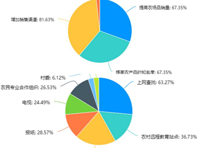基于前期了解以及为后期工作顺利做准备,为如何增加销售额提供方法渠道与支持,团队就“农产品电商化”为主题设计系列问题,并通过调查问卷的形式,主要提出农产品电商化的可行性建议,以此增加销售额并进行可持续发展。在问卷的发放模式上,团队使用问卷星作为发放样本问卷工具,选用互联网发放方式,通过腾讯微博、微信、腾讯QQ等渠道向全国各地进行诚信问答,从而得到大范围、大基数数据,为后期活动开展提供坚实基础。