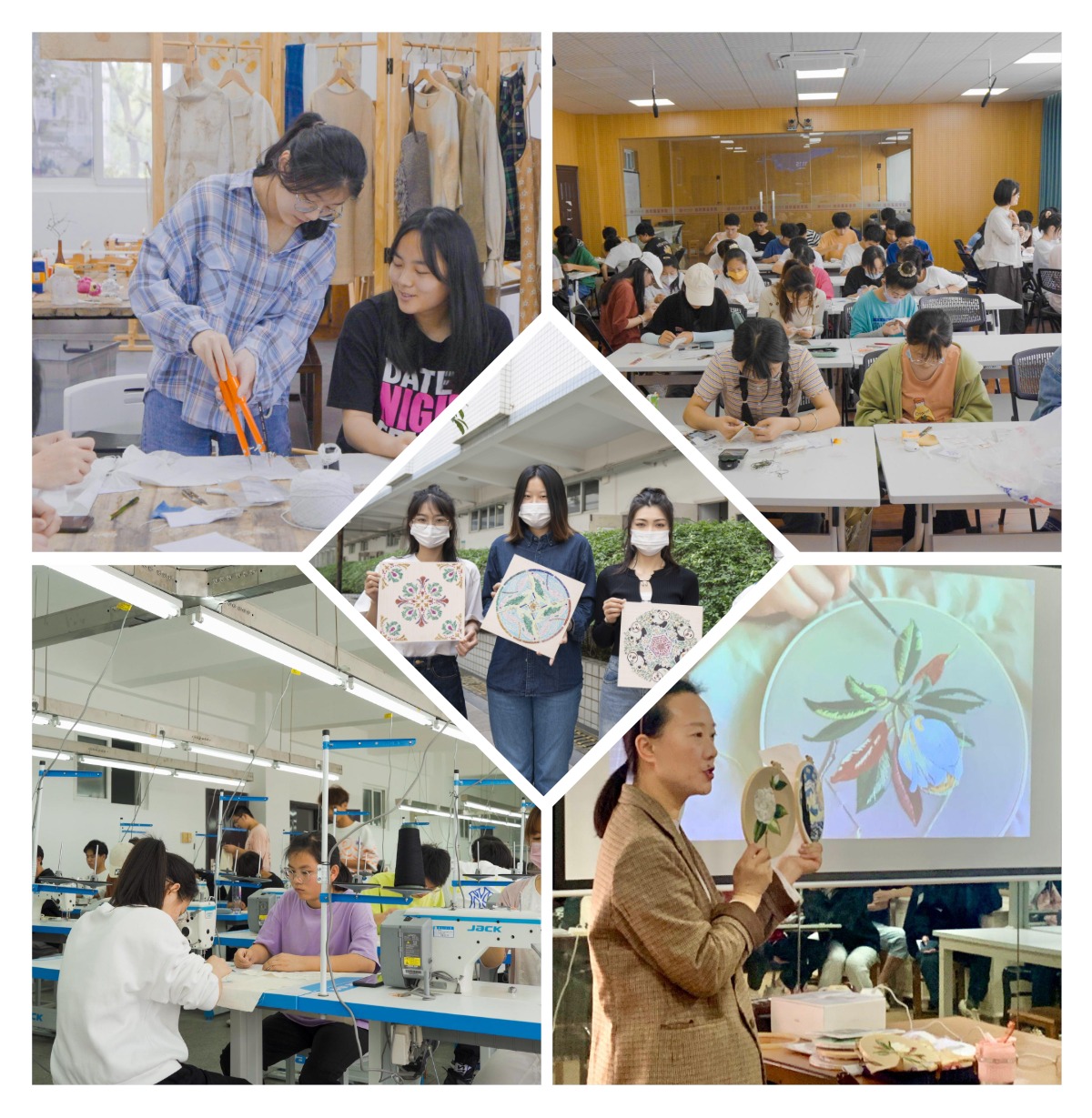 本学期,纺织服装学院共开设了《变废为宝(废玻璃拼贴DIY)》、《手工刺绣》、《缝纫制作》等5门劳动教育实践课程。授课22门次,630名学生选修上述课程。其中,由芜湖市非物质文化遗产项目章氏女红传承人章慧,芜湖浆染技艺传承人黄勤茹老师开设了非遗特色课程 《非遗技艺劳动(传统女红)》、《芜湖浆染技艺》。