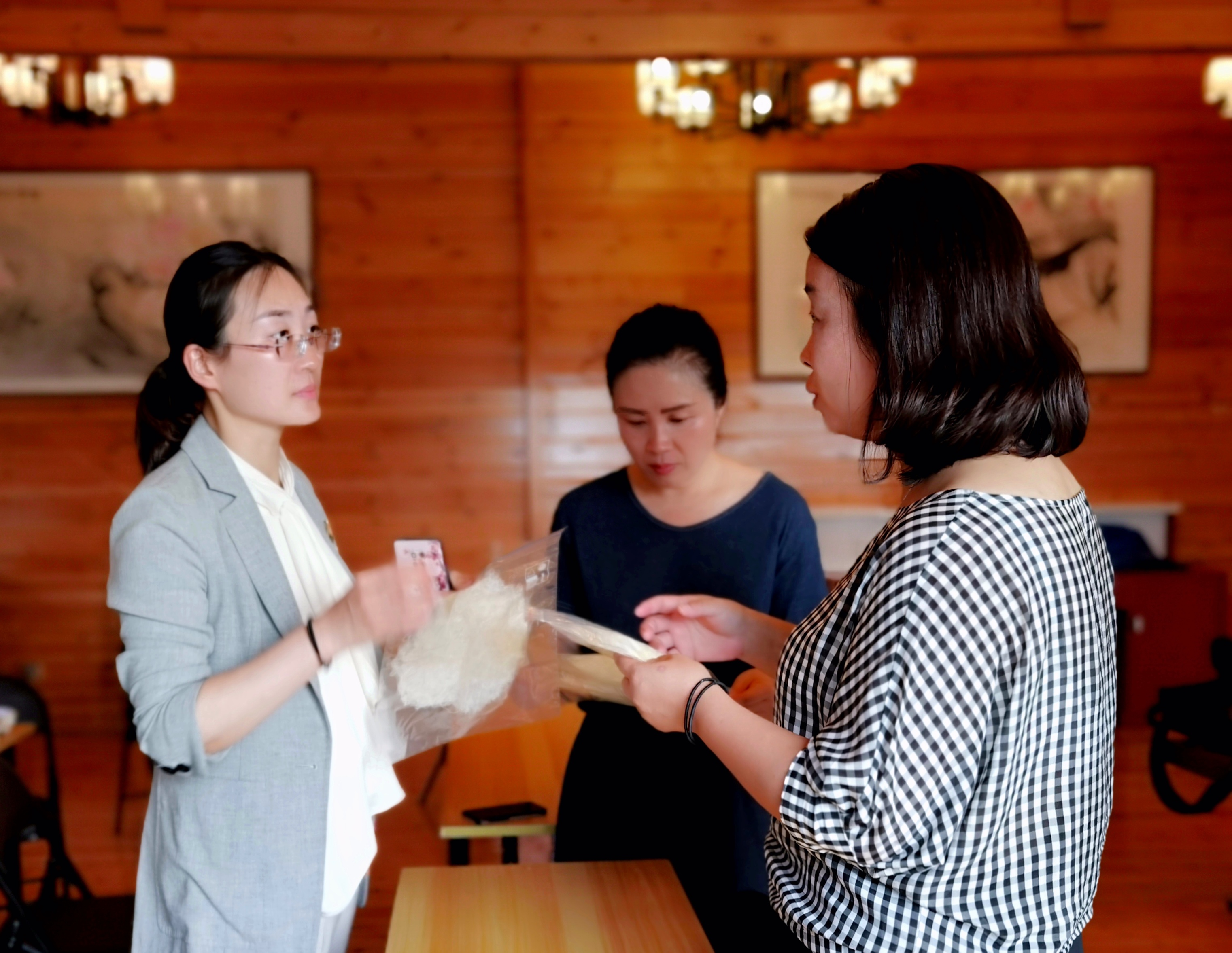 “美遇•莲动”暑期社会实践团队充分结合自身专业特色,采集当地荷杆,提取莲丝纤维,在对莲丝杀菌消毒后进行实验探究,挖掘其中的应用价值。此次实践活动不仅可以解决当地荷叶凋落致荷塘污染泥土问题,还通过对荷叶、莲蓬的回收工作,结合芜湖“浆染”非遗技艺,开展天然植物的染色实验,在带动乡村振兴发展的同时进一步加强专业融合,弘扬传统文化。