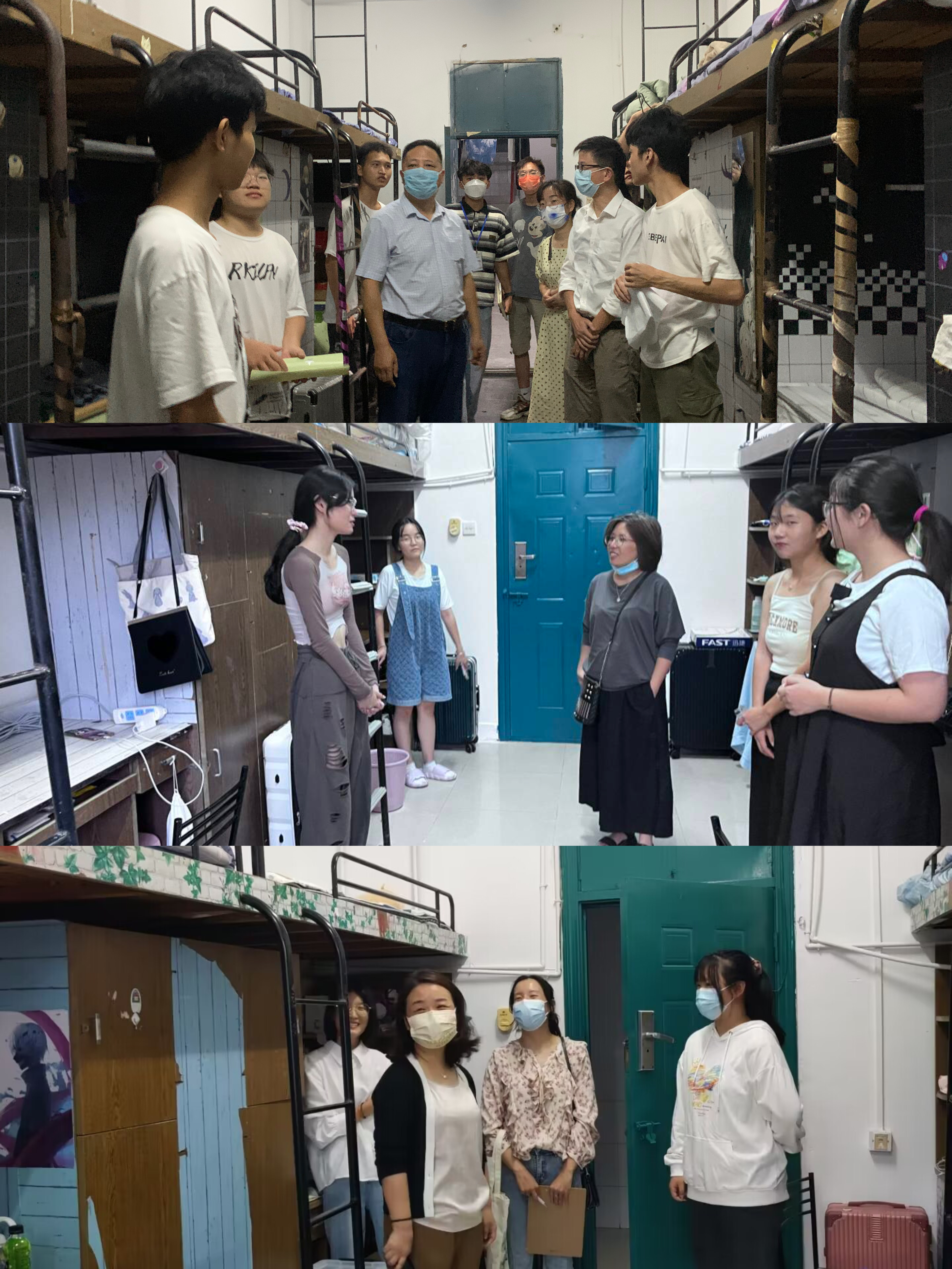 94日晚,学院党政班子带领新生辅导员、学长导员一同深入学生宿舍,看望慰问新同学。学院通过丰富多样的迎新方式,使萌新们感受到大学生活将丰富多彩;志愿者们用热情迎接新同学,让新同学感到离开家来求学的心并不孤单;学长导员用耐心帮助新同学,帮助他们能尽快适应大学生活。愿2022级萌新们站在新阶段新起点上,开启新期望,承载新梦想,开拓新征程。