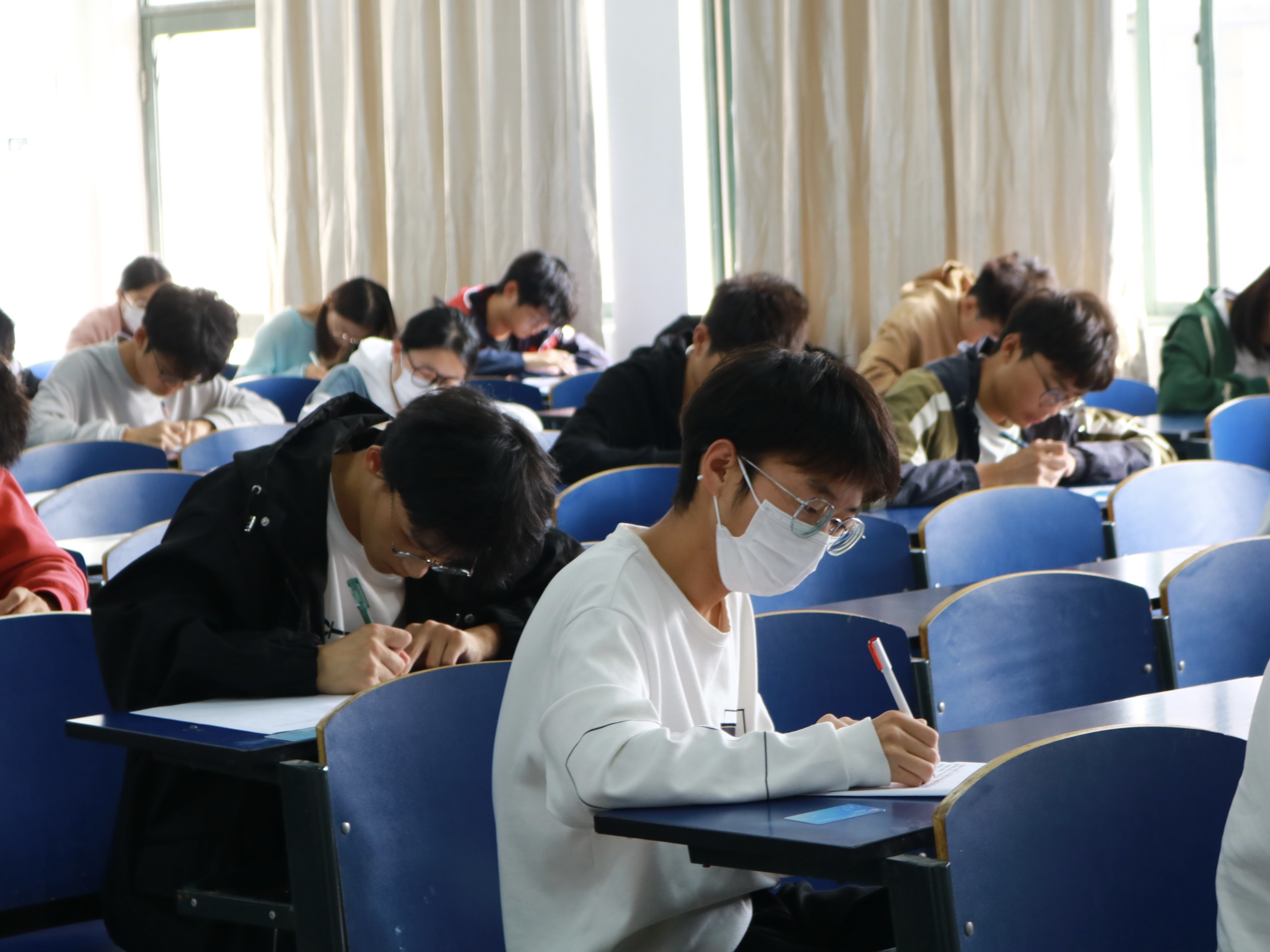 本次竞赛以笔试闭卷的方式进行,分为选择题、填空题、判断题和简答题四种题型。重点考察了“高等学校学生行为准则”、“奖学金评选条件”和“大学生的责任与担当”等内容。考试过程中,学生们严格遵守考场纪律,答题全神贯注,监考人员恪尽职守,认真维护考场秩序整场考试考风严肃,井然有序。
