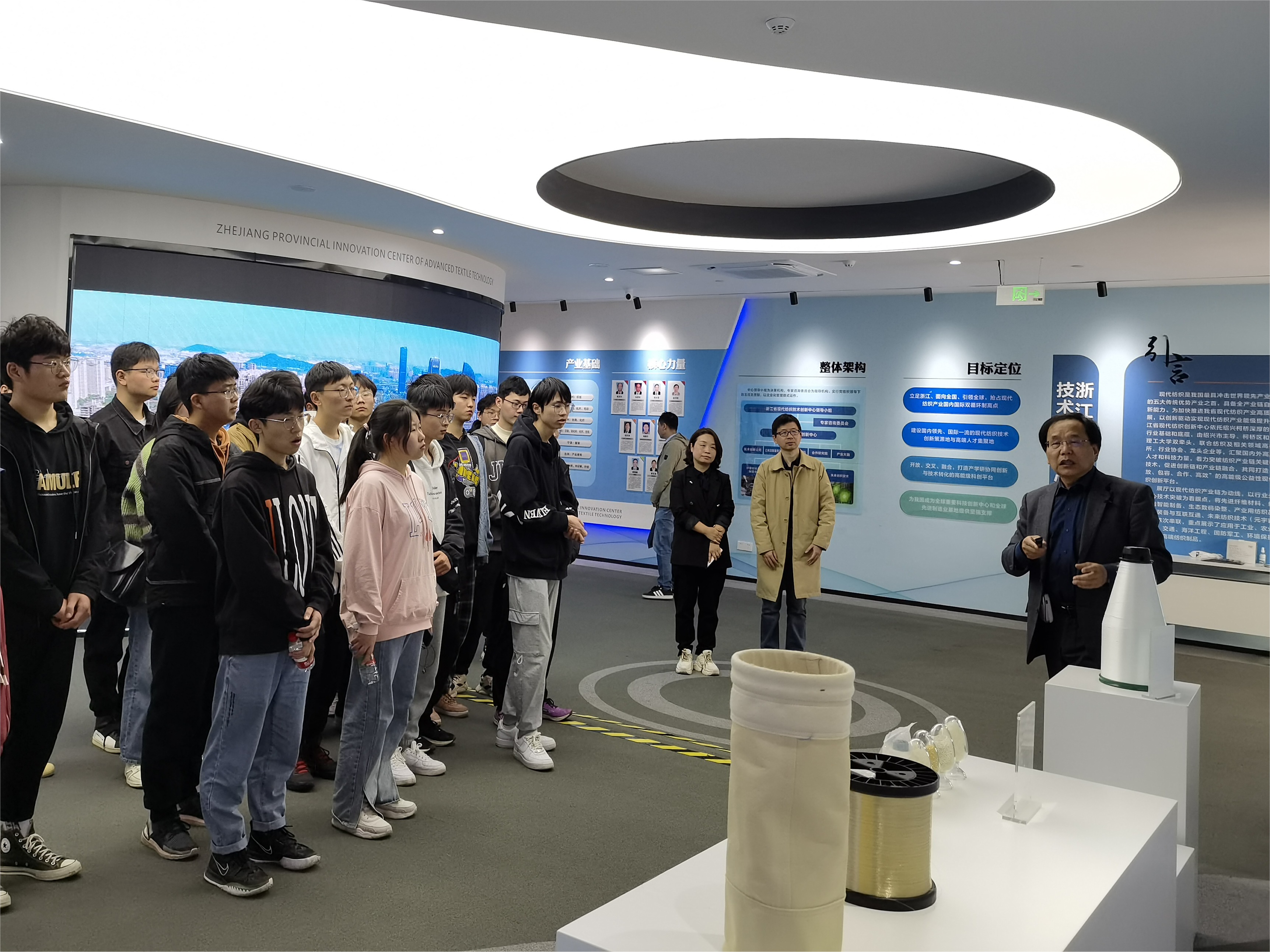 活动首站来到浙江现代纺织技术创新中心,在中心常务副主任、我校特聘教授倪庆清的带领下,生实地参观中心实验室和展厅,了解了高性能纤维、高端纺织与智能制造、先进复合材料、未来纺织技术等现代纺织的发展方向,并参与体验了智能换衣、功能纺织品的无穷奇妙。在广东德美柯桥分公司,师生们参观了公司CNS实验室,直观地了解纺织印染行业产品开发、前沿技术和最新应用情况。