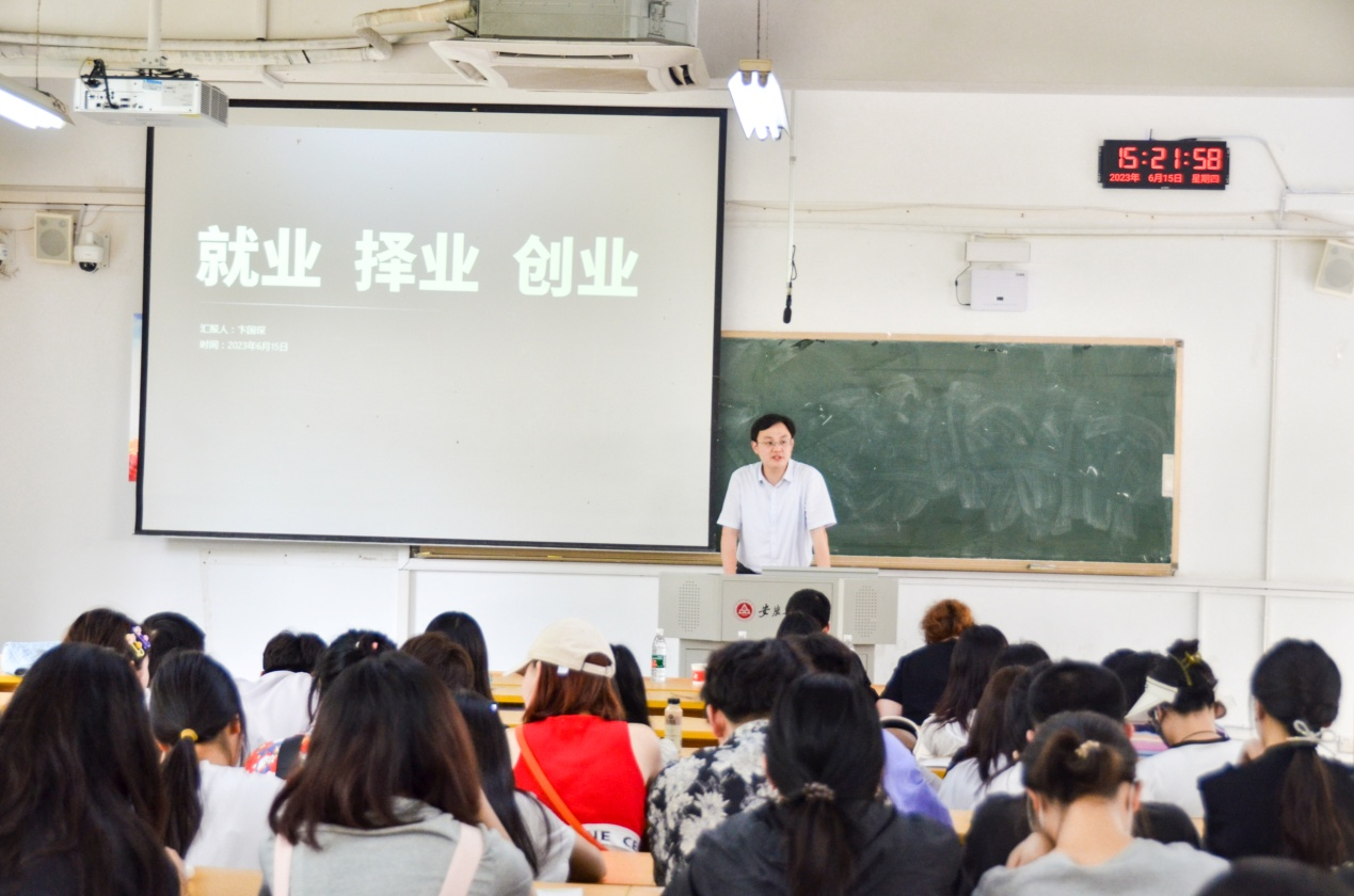 首先,方媛介绍了安徽省第十届工业设计大赛暨芜湖市第五届“镜湖杯”都市智造分项赛的有关情况,该赛事由由安徽协同创新设计研究院承办,为安徽省大学生学科和技能竞赛B类赛事,鼓励学生积极参加。随后,卞国琛作为本期主讲嘉宾,结合个人求职经历,通过与同学们互动的方式,分析“就业、择业、创业”的区别,他鼓励学生拓展视野,大胆接触新鲜事物。在活跃的气氛下,学生们纷纷就关心的就业创业方面问题进行了提问,开展了深入的讨论。