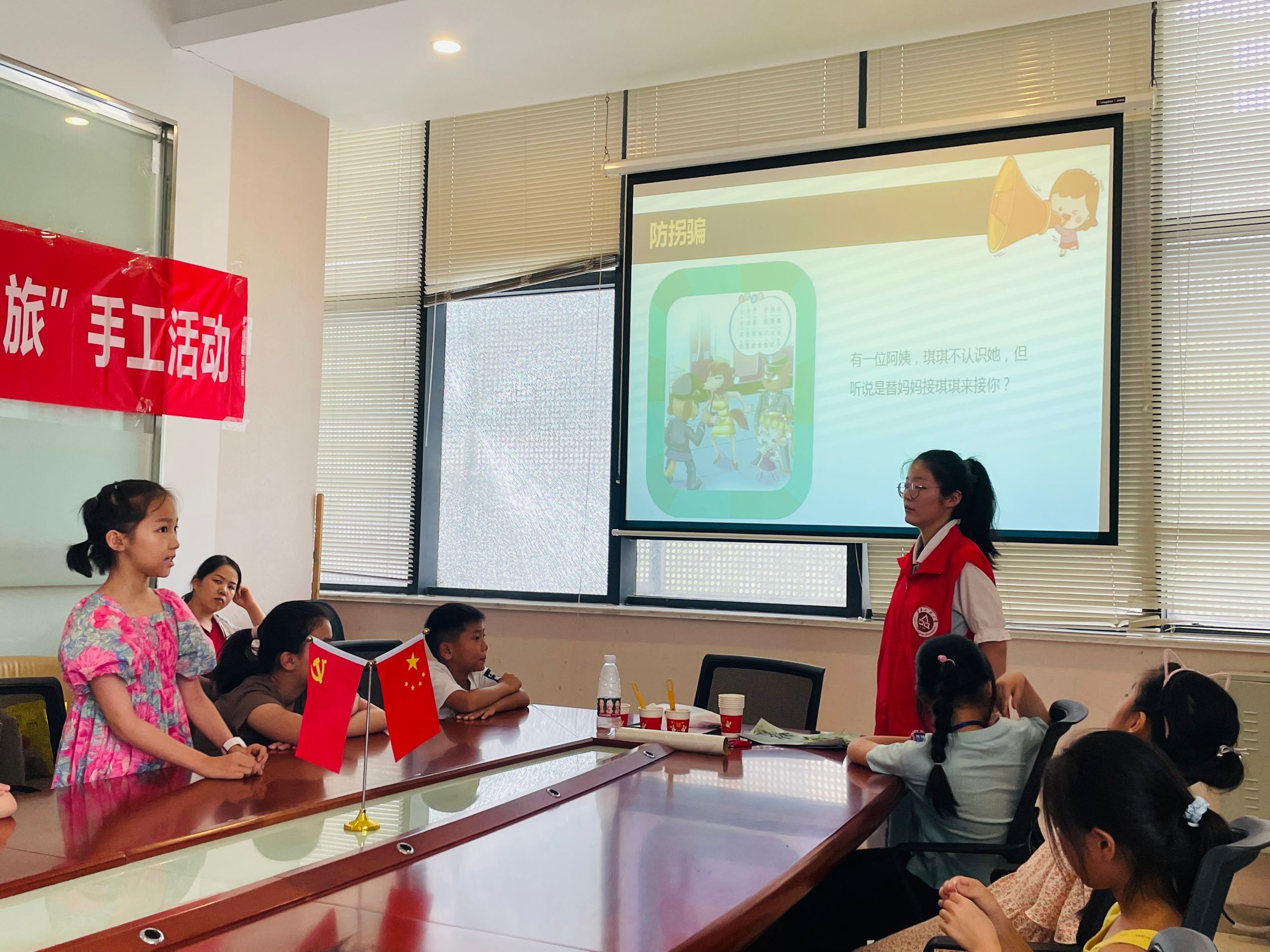 在等待蓝晒过程,团队志愿者还开展了儿童心理健康安全知识宣讲,特别对儿童情绪管理、假期防溺水防高压电安全知识、假期居家外出等安全事宜进行了重点宣讲。