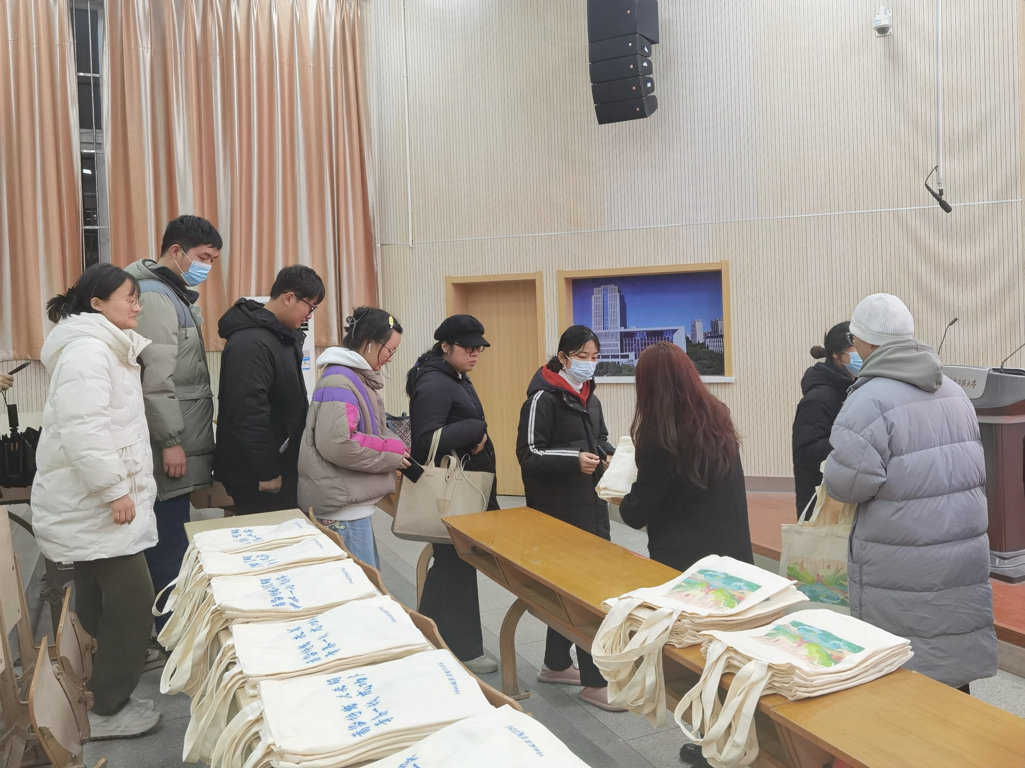 最后领导老师们“紫云英”人才政策推介志愿服务团队成员一起为考研学子分发考研慰问暖心包。暖心包寄托着学院对考研学生的关心关爱和真诚祝福。