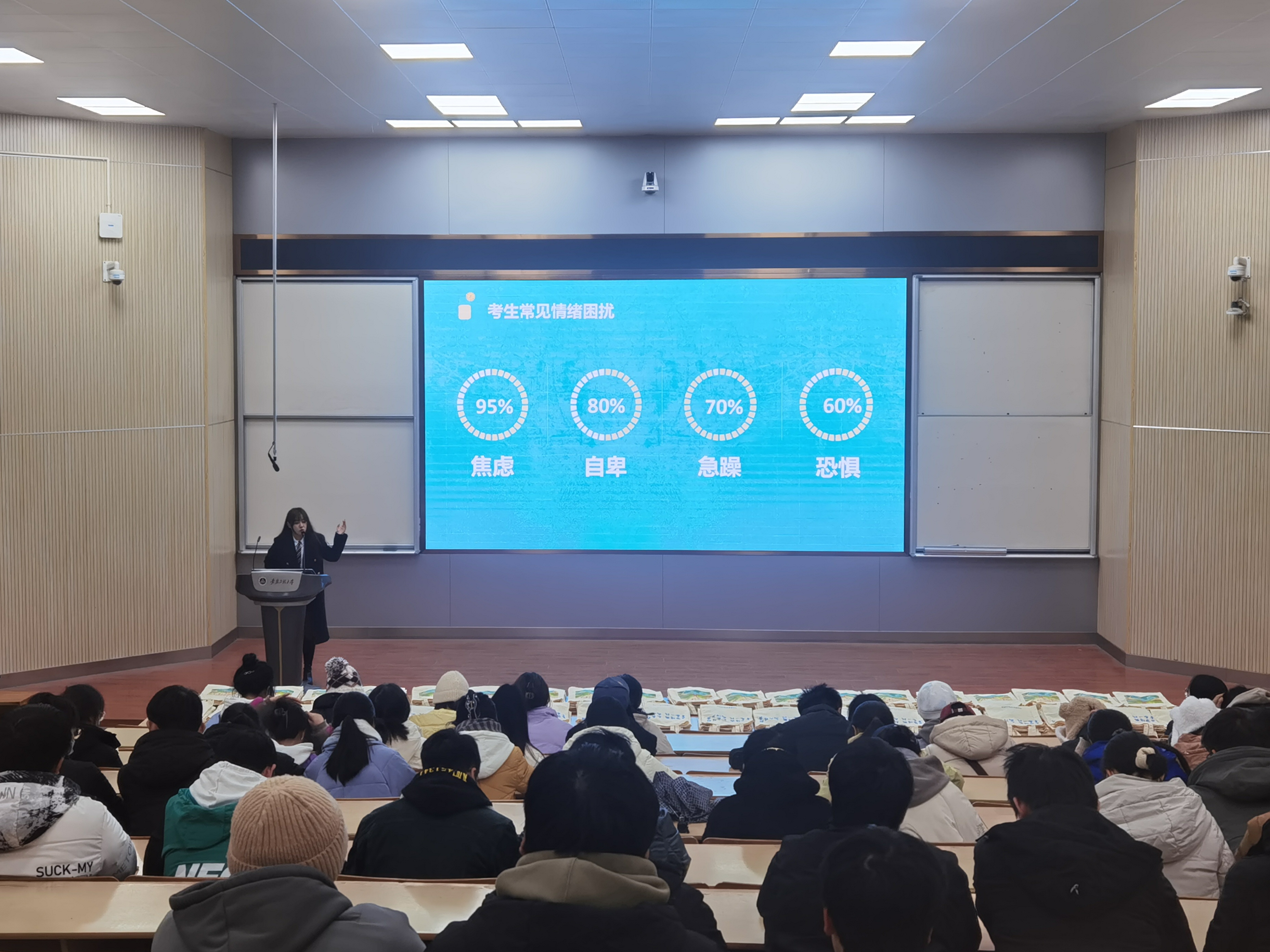 李梦圆从考研情绪困扰、心理减压和做好心理准备等方面展开分享,引导同学们在冲刺阶段要正确认知情绪,在考前出现焦虑状态是正常情况,适度的焦虑有助于大家提高学习效率,关键看如何调整自己的复习策略,调动自己的学习积极性。同时还详细介绍了备考时如何释放压力和情绪,结合“加法”“减法”来获得自信心,通过放松身心和合理宣泄等方式学会自我减压,并祝福大家一战成硕。