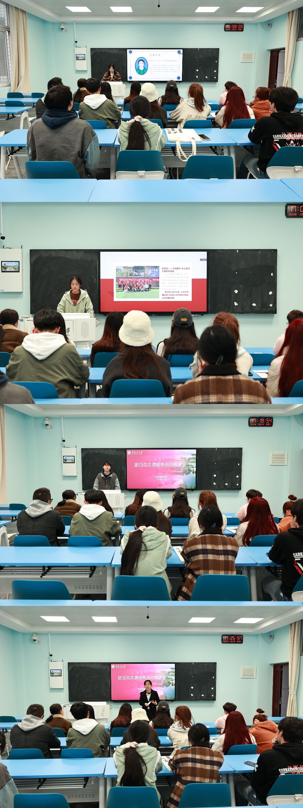 校十佳志愿者柯烨分享了自己参加团百花志愿服务的成长与感悟,校金奖项目——凤尾兰志愿服务团队负责人余心怡汇报了工作开展情况和下一步计划。校金奖项目——“画小匠”志愿服务团队负责人齐人杰分享了志愿服务收获,重点介绍了开展志愿服务的注意事项。会议还就如何加强志愿服务活动的宣传和推广进行了讨论。最后,陈倩详细介绍了近年来我院志愿服务工作的开展情况。她通过一系列数据和案例,展示了志愿者们在社区服务、支教助学、环保公益等领域的积极贡献。她指出,开展志愿服务一定要结合学院专业特色、结合主题团日活动、结合学生专长,将所学知识投入到实践中,投入到志愿服务的过程当中。