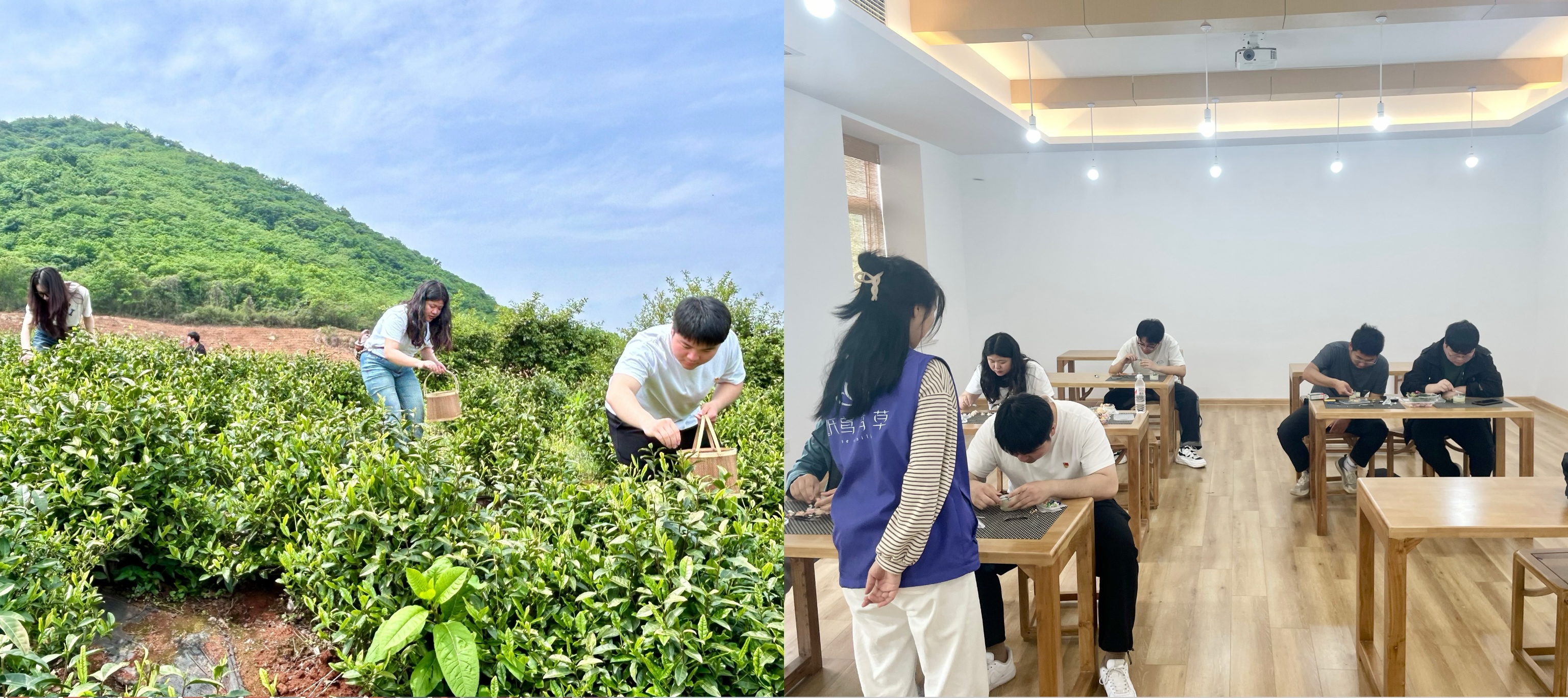 团队前往繁昌纸鸢香草庄园开展“闻香识草,寻味春天”研学实践活动,跟随庄园创始人参观庄园农产品展区、手工艺品展区及工作室。参观完毕后,队员背起竹筐前往茶园进行采摘茶叶活动,并体验了炒茶等制茶环节。在香薰DIY环节中,工艺老师为团队成员逐一介绍了香薰的制作材料及制作过程,大家调配精油、倒入色粉、加入蜂蜡、加热搅拌,认真细致地制作着自己的专属“作品”。