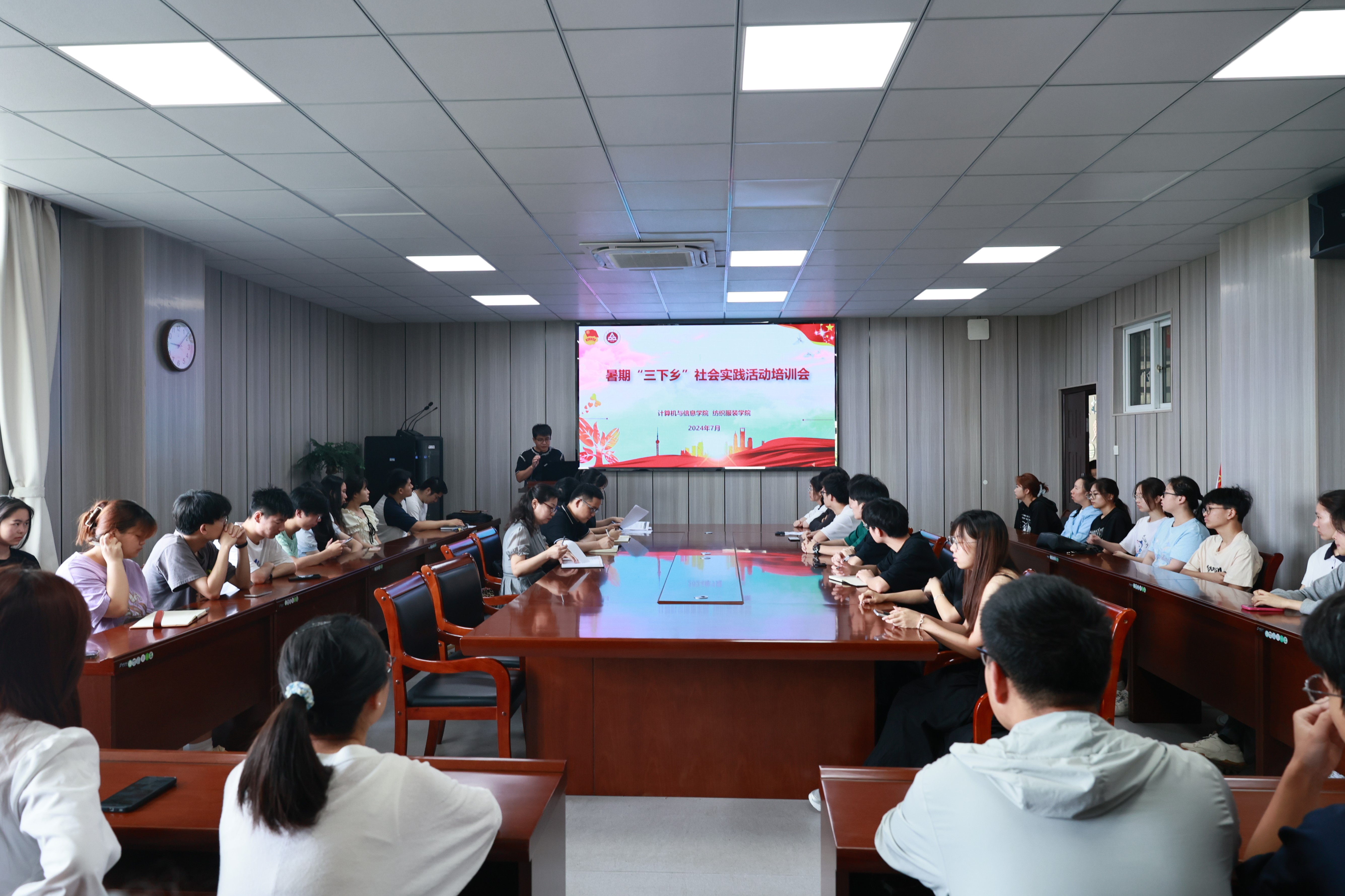 7月3日,纺织服装学院、计算机与信息学院在D座413会议室召开2024年暑期“三下乡”社会实践活动培训会,校团委副书记周海林、计算机与信息学院党委副书记孙德茹、纺织服装学院党委副书记梁雪松、实践团队指导老师、学生负责人参加。会议由计算机与信息学院团委负责人孙力力主持。
