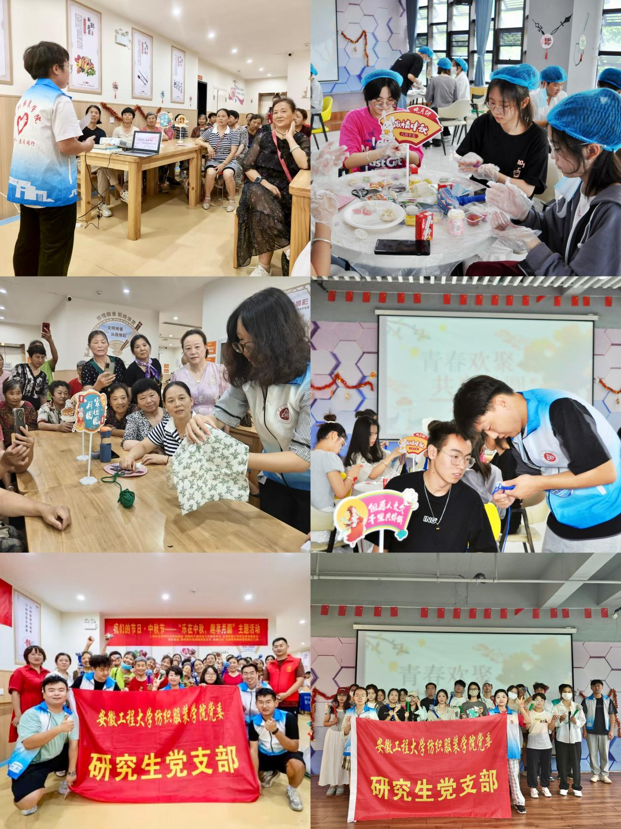 为弘扬中华优秀传统文化,丰富学生党员的校园生活,中秋佳节前夕,纺织服装学院研究生党支部携手校“花毛茛”志愿服务团队、“凤尾兰”志愿服务团队赴芜湖仁和社区养老服务站和校第五食堂开展“情暖迎中秋,共筑中国梦”主题党日活动,与50余位社区老阿姨和大学生“趣”过中秋。