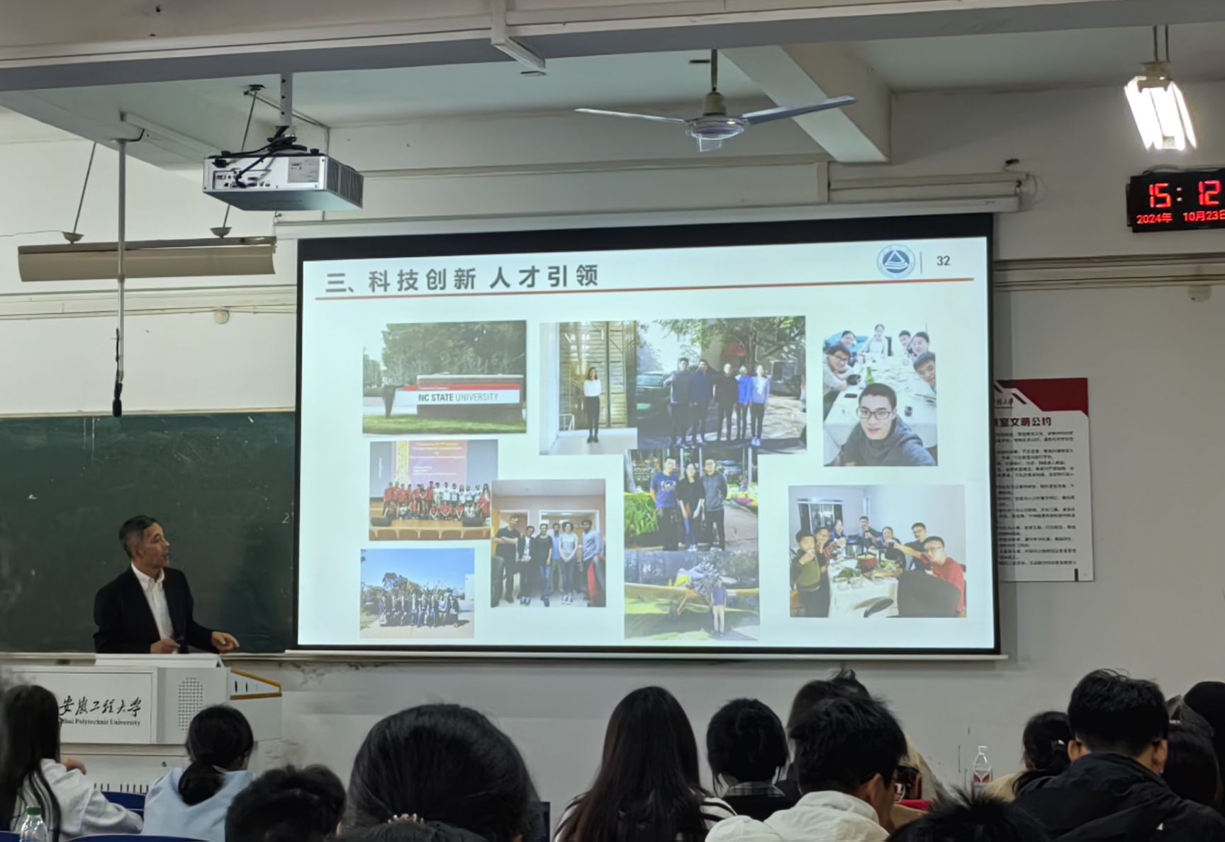 10月23日,江南大学博士生导师魏取福教授应邀为纺织服装学院24级纺织工程、非织造材料与工程、服装设计与工程专业学生作“经天纬地 织就未来”专题讲座,讲座由副院长陶旭晨主持。
