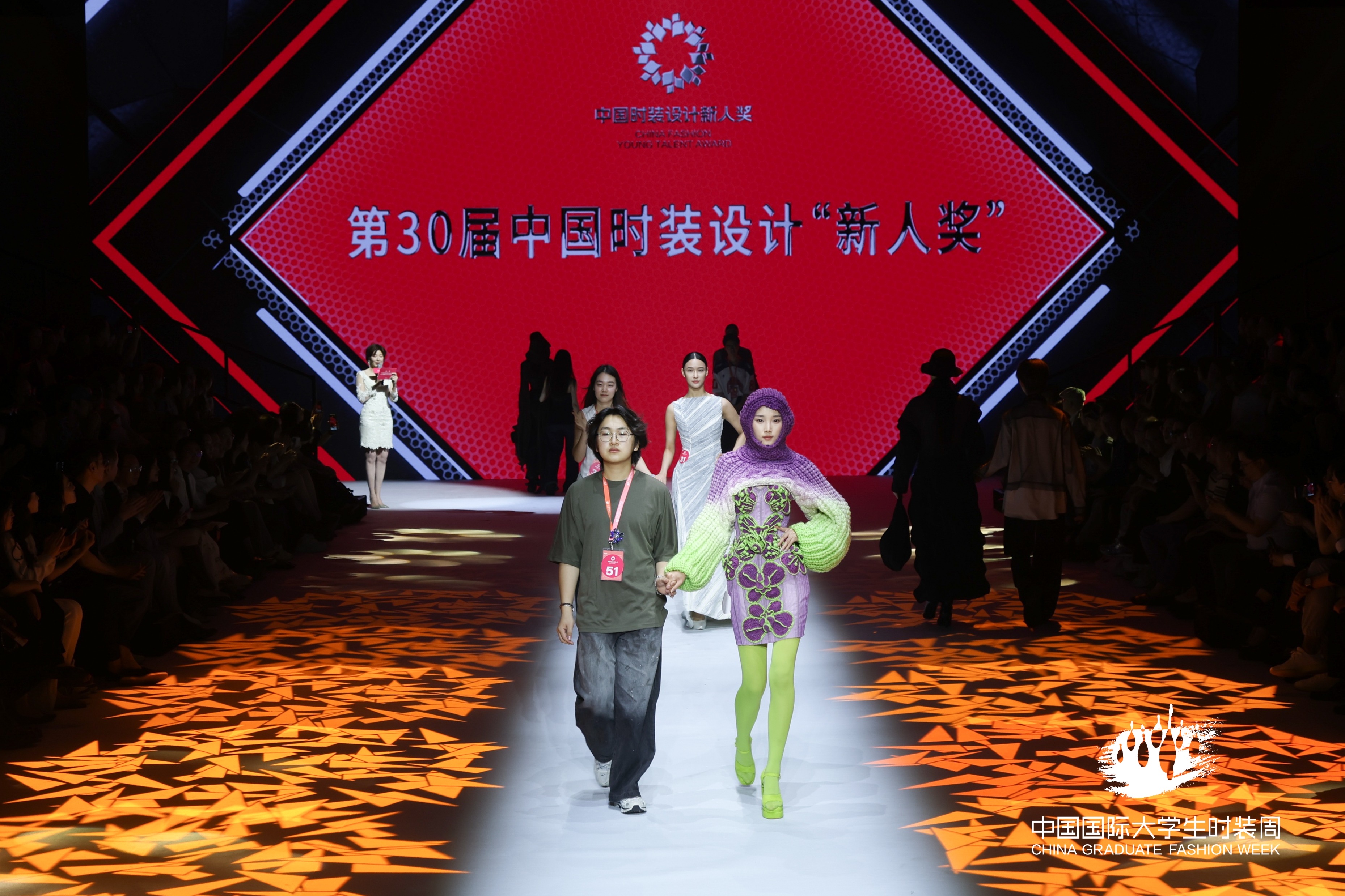 5月20日,第30届中国时装设计新人奖评选暨2025中国国际大学生时装周颁奖典礼在北京751 D▪PARK第一车间隆重举行。我校纺织服装学院服装系师生携毕业设计作品精彩亮相,充分展示了教学成果与专业实力。